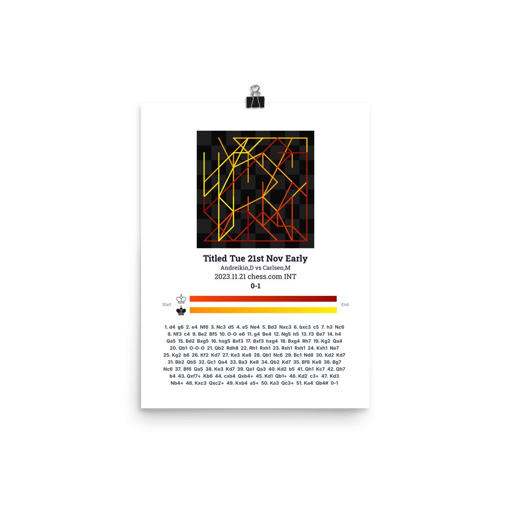 Museum-quality poster on thick, durable matte paper. A sharp, clean look for any chess visualisation.