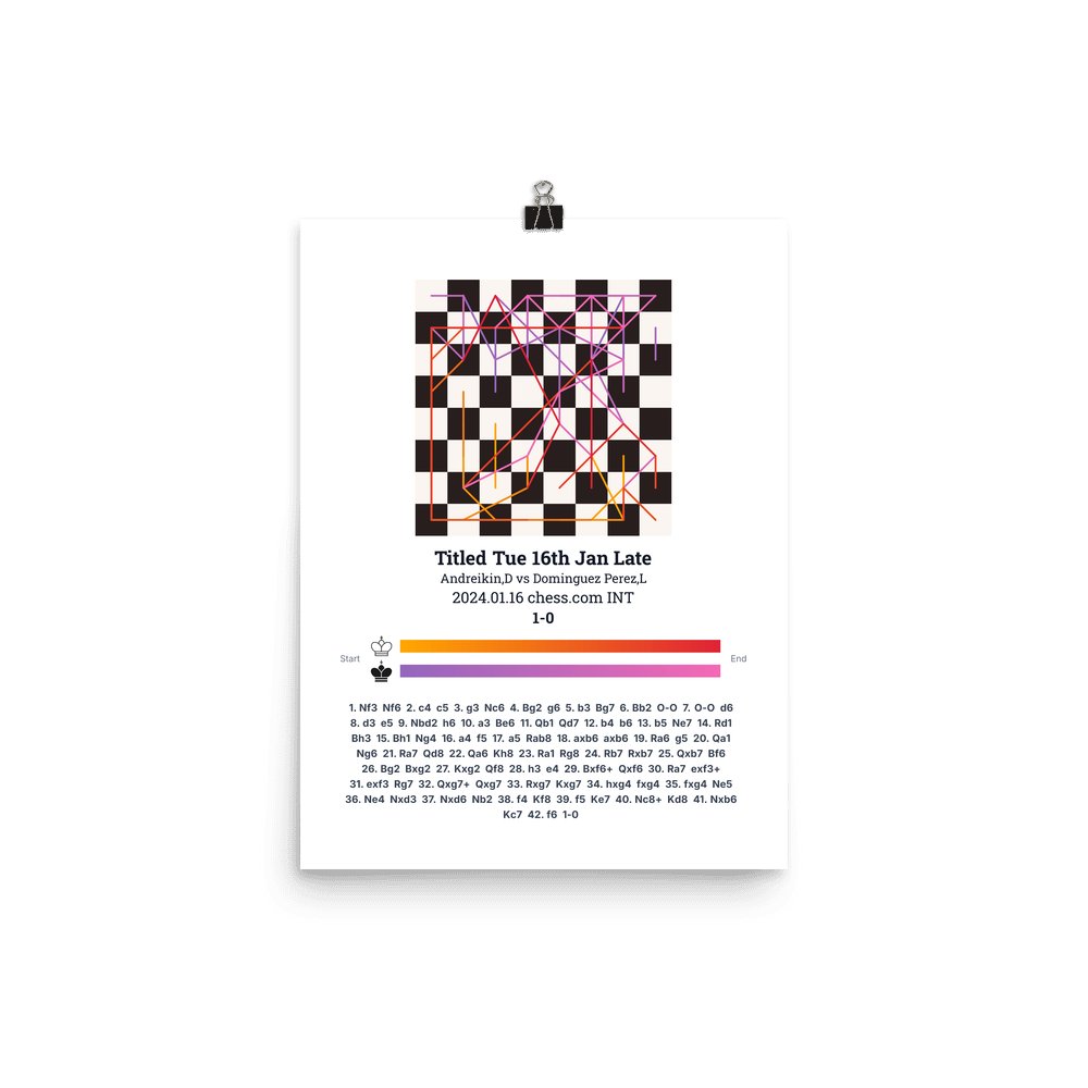 Museum-quality poster on thick, durable matte paper. A sharp, clean look for any chess visualisation.