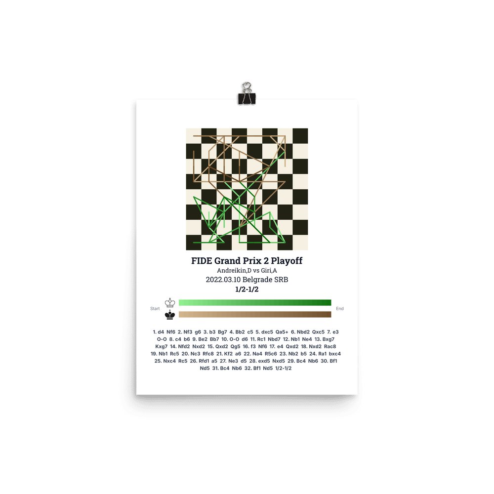 Museum-quality poster on thick, durable matte paper. A sharp, clean look for any chess visualisation.