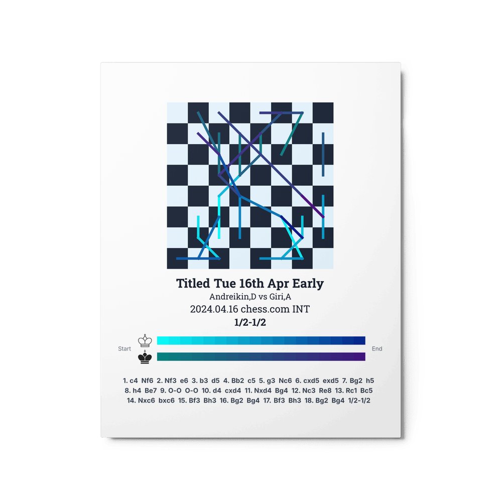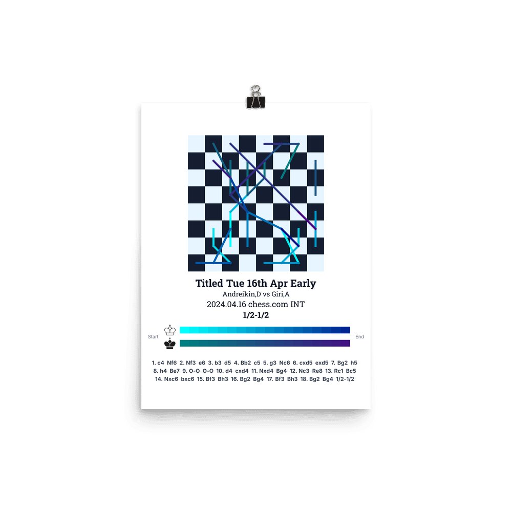 Museum-quality poster on thick, durable matte paper. A sharp, clean look for any chess visualisation.