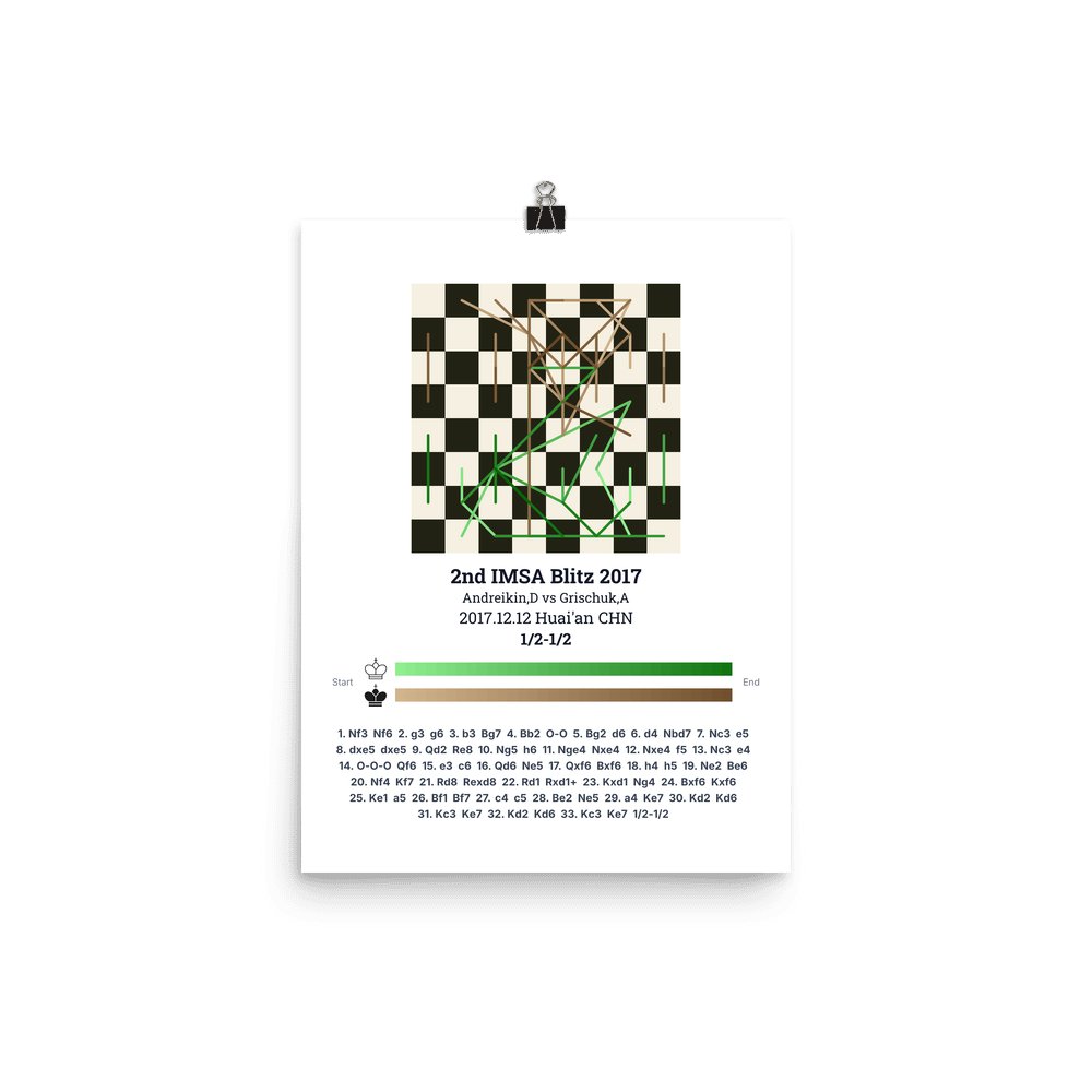 Museum-quality poster on thick, durable matte paper. A sharp, clean look for any chess visualisation.