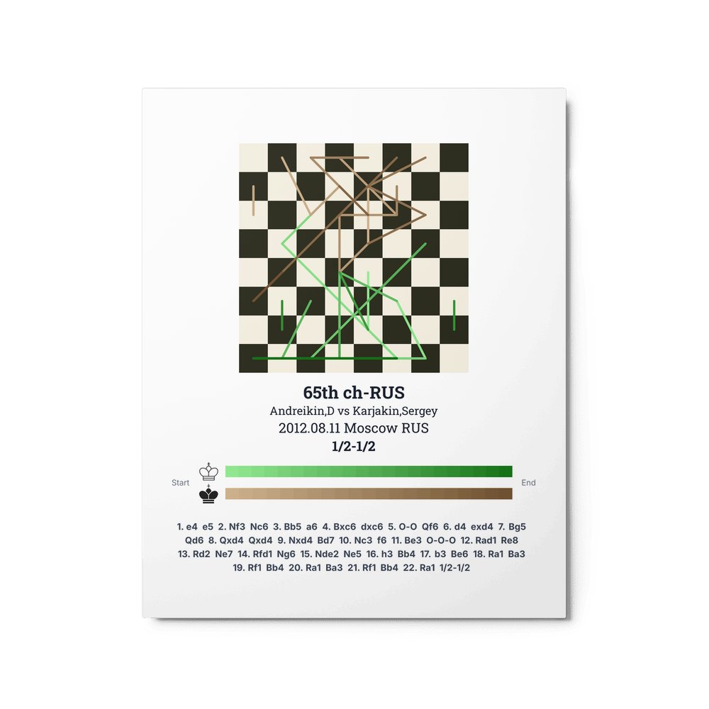 Museum-quality poster on thick, durable matte paper. A sharp, clean look for any chess visualisation.