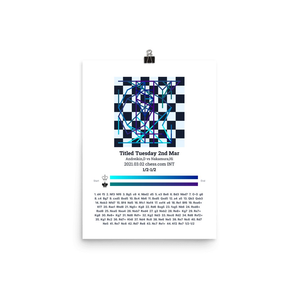 Museum-quality poster on thick, durable matte paper. A sharp, clean look for any chess visualisation.