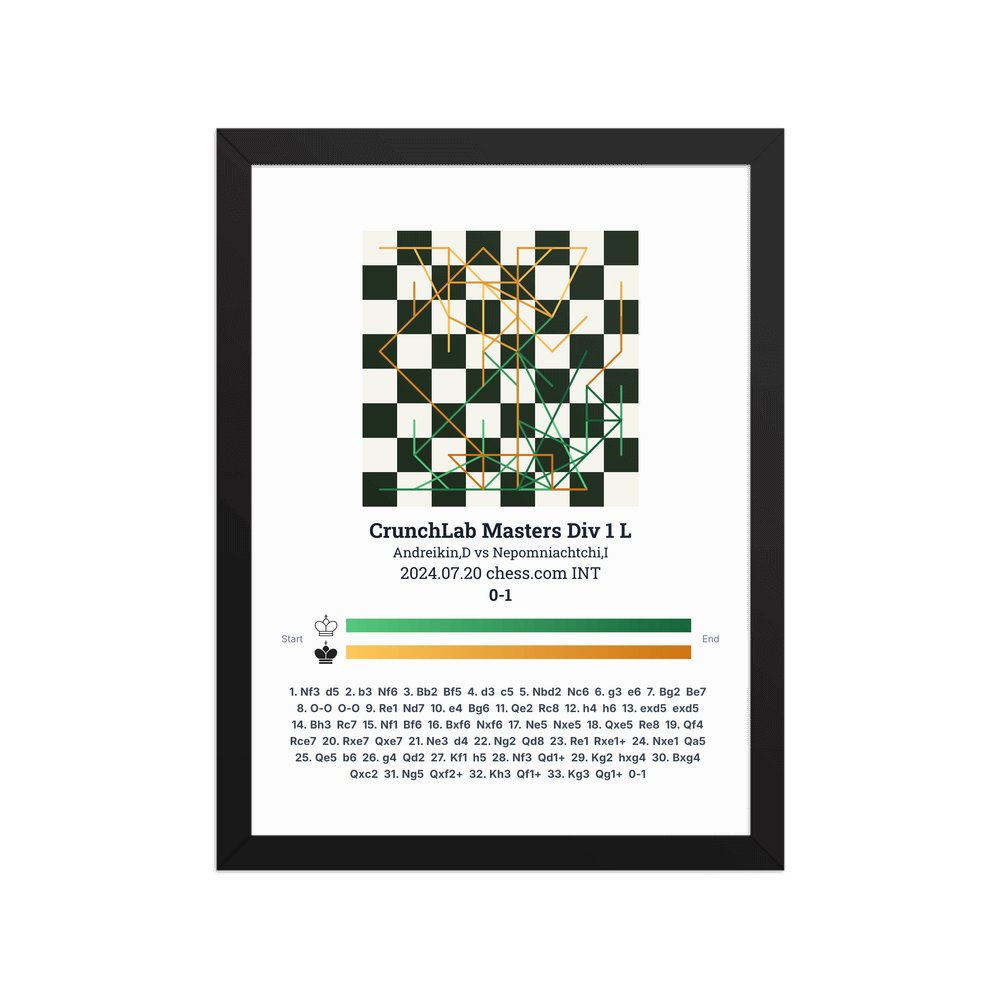 Museum-quality poster on thick, durable matte paper. A sharp, clean look for any chess visualisation.