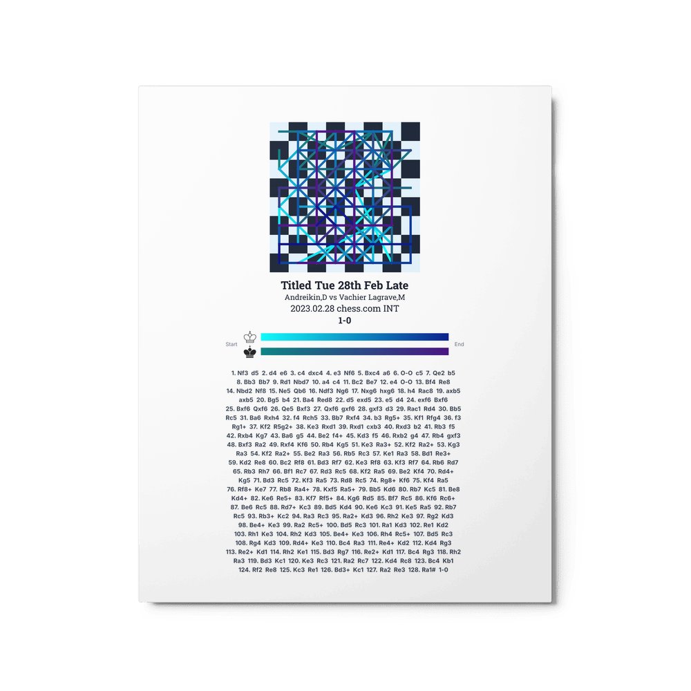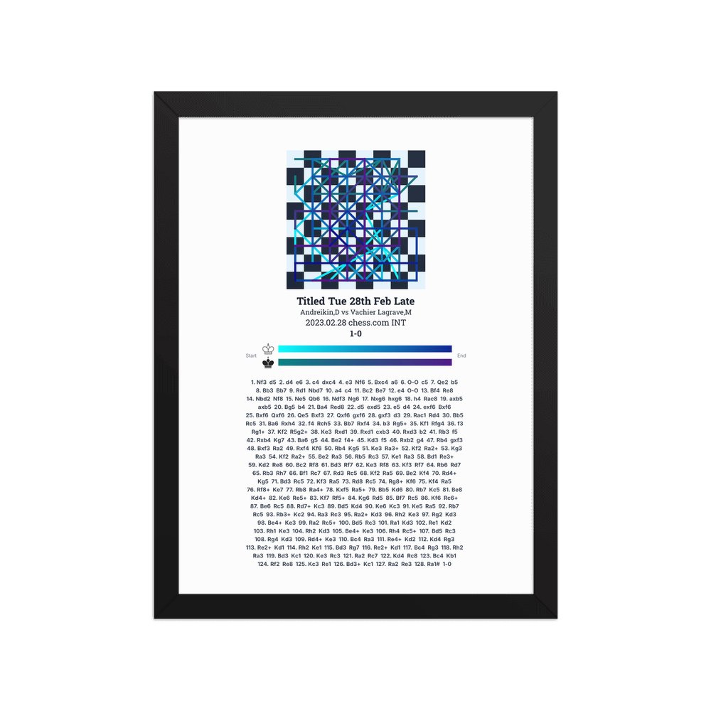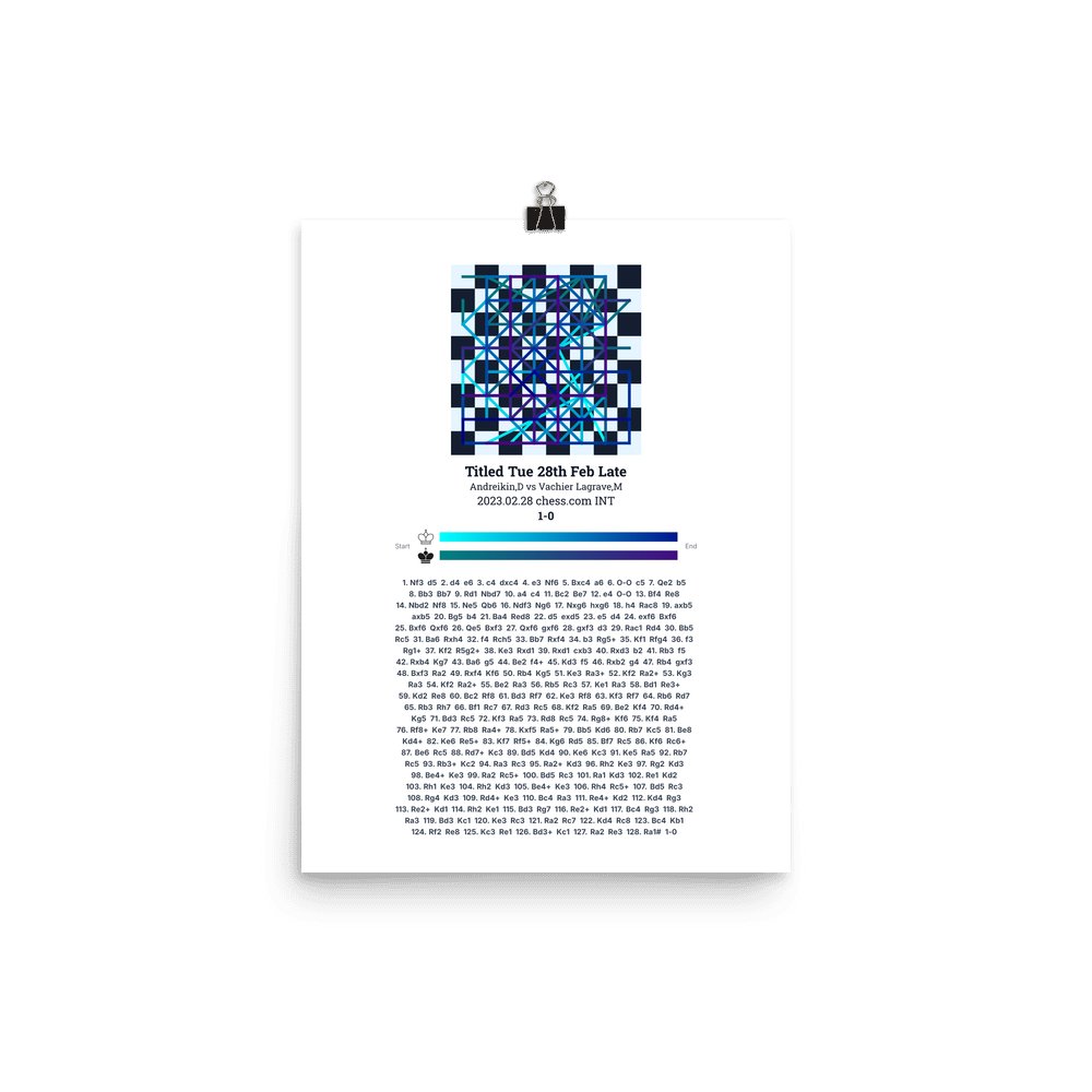 Museum-quality poster on thick, durable matte paper. A sharp, clean look for any chess visualisation.