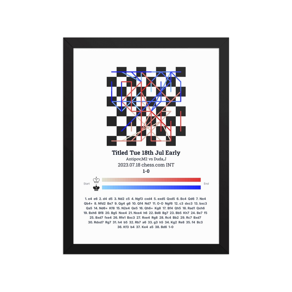 Museum-quality poster on thick, durable matte paper. A sharp, clean look for any chess visualisation.