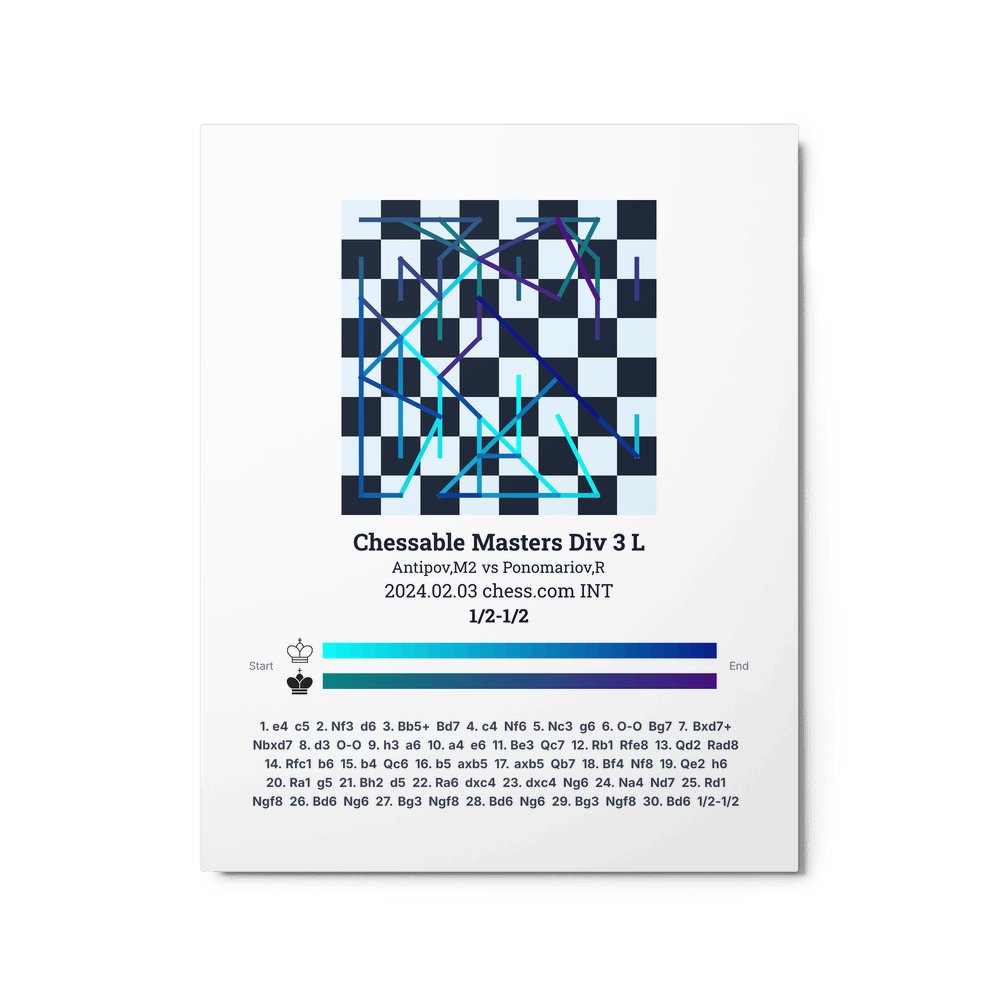 Museum-quality poster on thick, durable matte paper. A sharp, clean look for any chess visualisation.