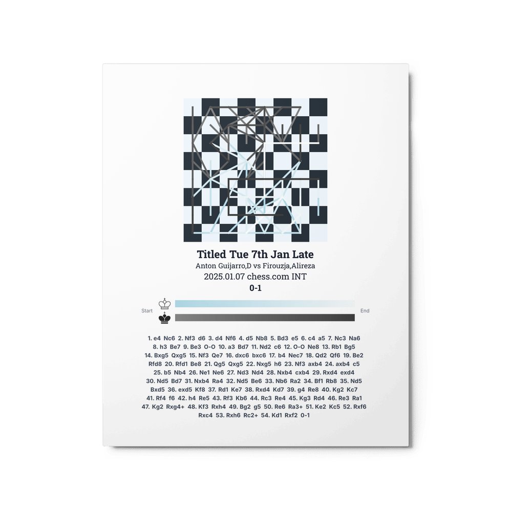 Museum-quality poster on thick, durable matte paper. A sharp, clean look for any chess visualisation.