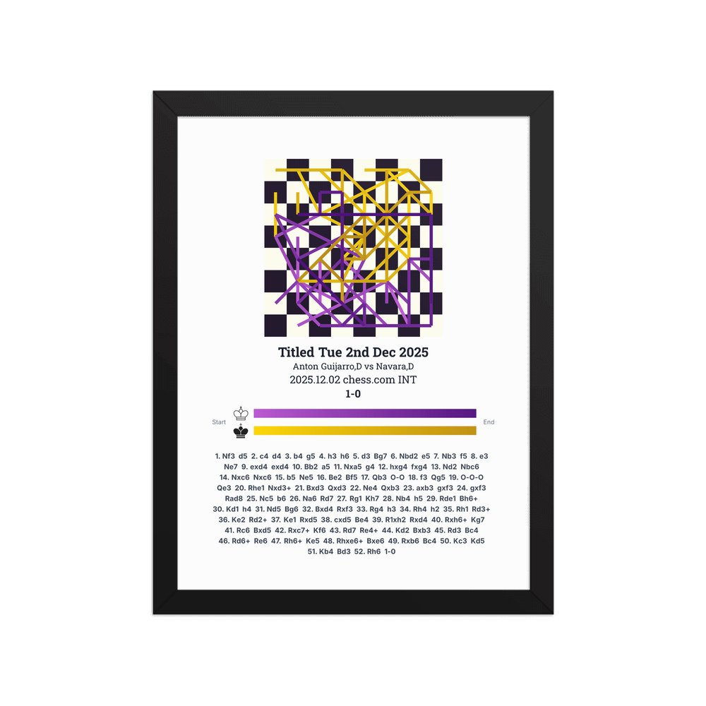 Museum-quality poster on thick, durable matte paper. A sharp, clean look for any chess visualisation.