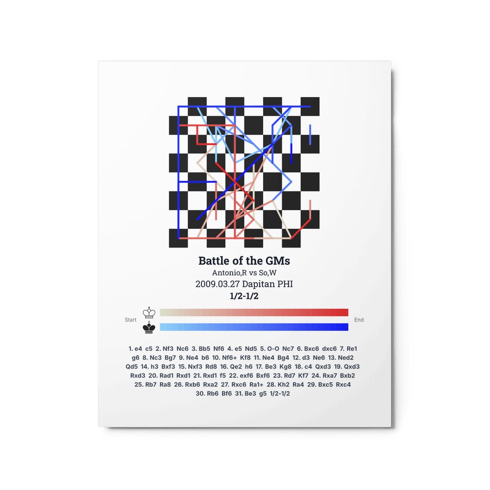 Museum-quality poster on thick, durable matte paper. A sharp, clean look for any chess visualisation.