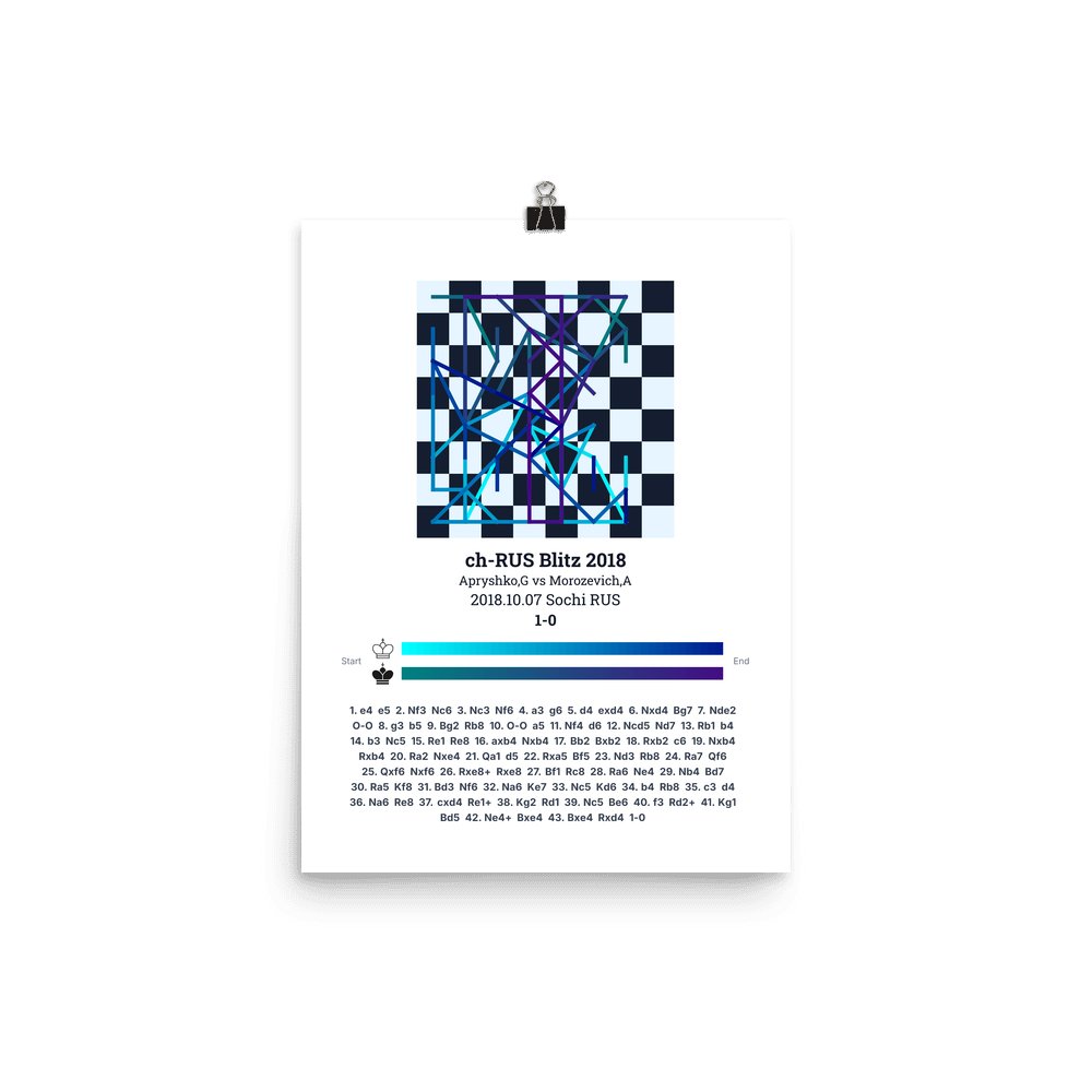 Museum-quality poster on thick, durable matte paper. A sharp, clean look for any chess visualisation.