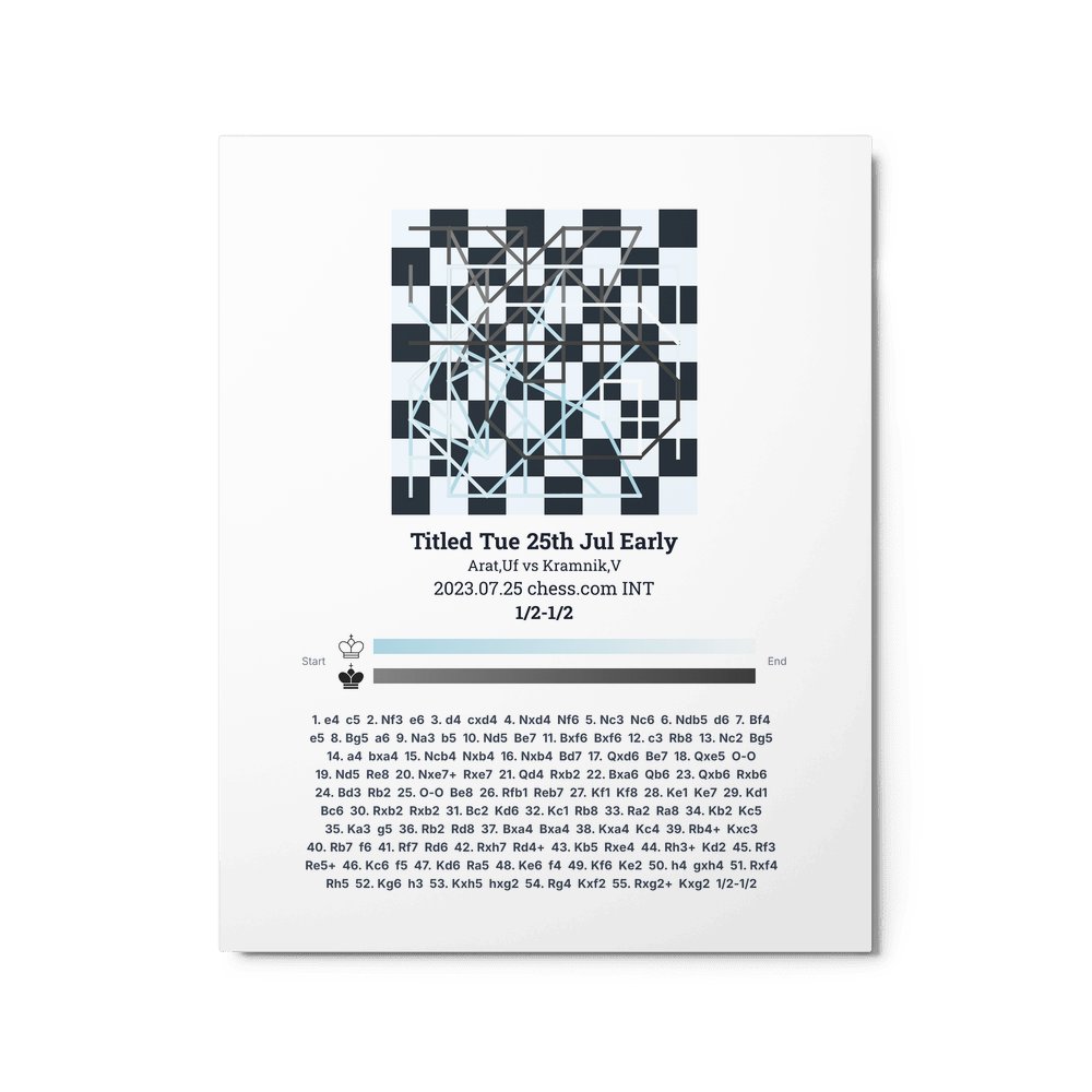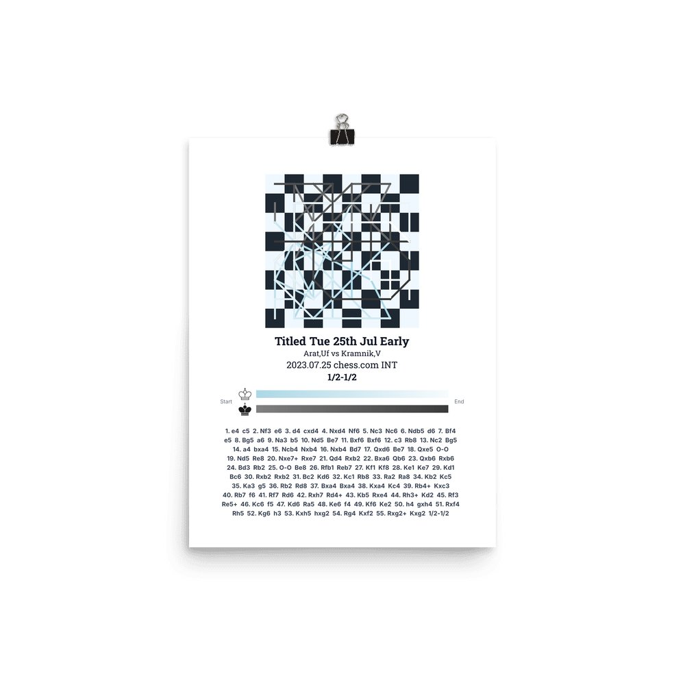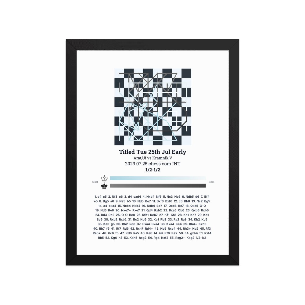 Museum-quality poster on thick, durable matte paper. A sharp, clean look for any chess visualisation.