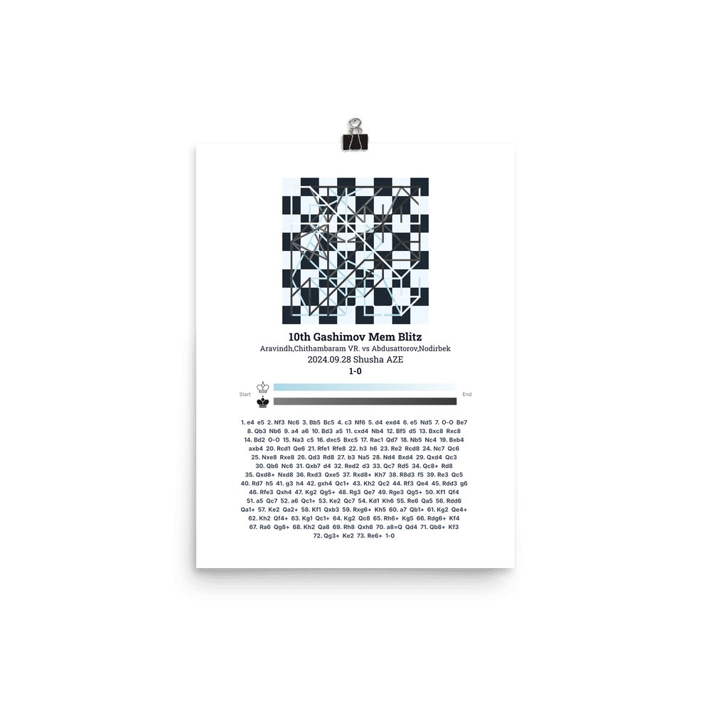 Museum-quality poster on thick, durable matte paper. A sharp, clean look for any chess visualisation.