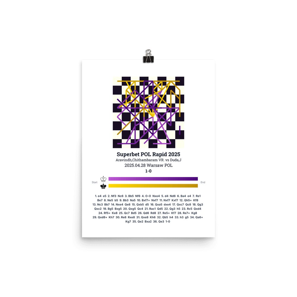Museum-quality poster on thick, durable matte paper. A sharp, clean look for any chess visualisation.