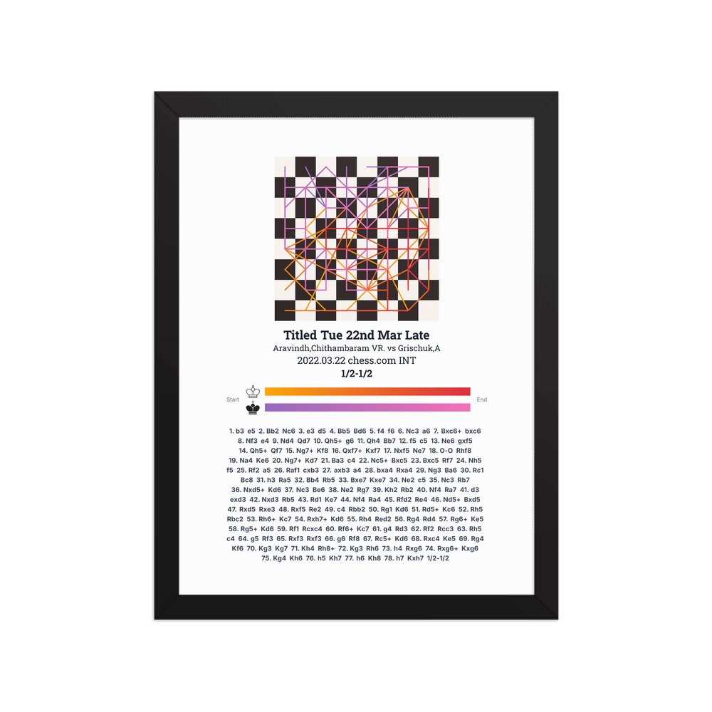 Museum-quality poster on thick, durable matte paper. A sharp, clean look for any chess visualisation.