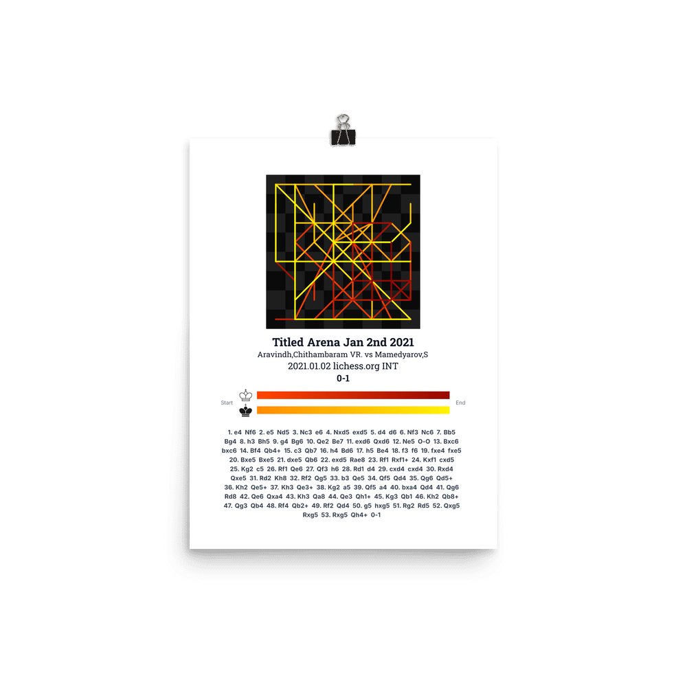 Museum-quality poster on thick, durable matte paper. A sharp, clean look for any chess visualisation.