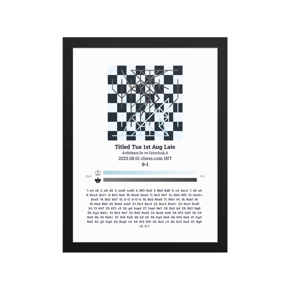 Museum-quality poster on thick, durable matte paper. A sharp, clean look for any chess visualisation.