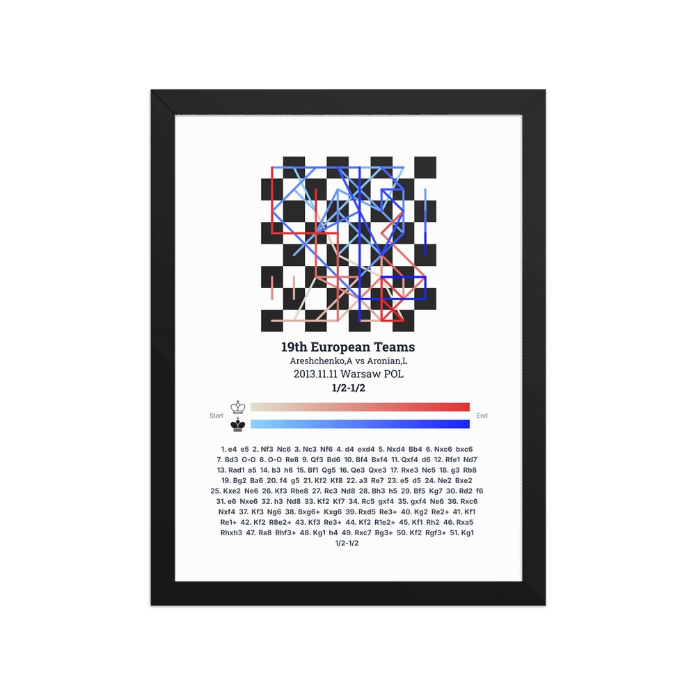 Museum-quality poster on thick, durable matte paper. A sharp, clean look for any chess visualisation.