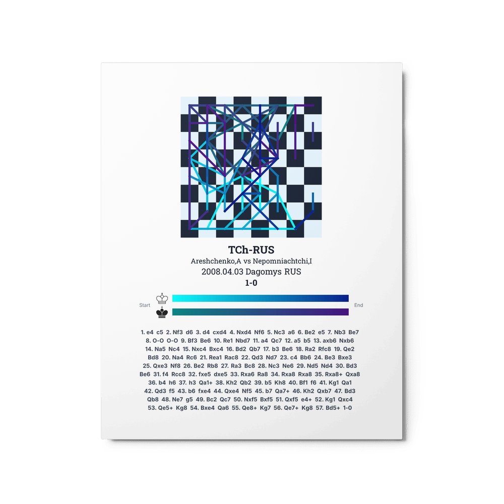 Museum-quality poster on thick, durable matte paper. A sharp, clean look for any chess visualisation.