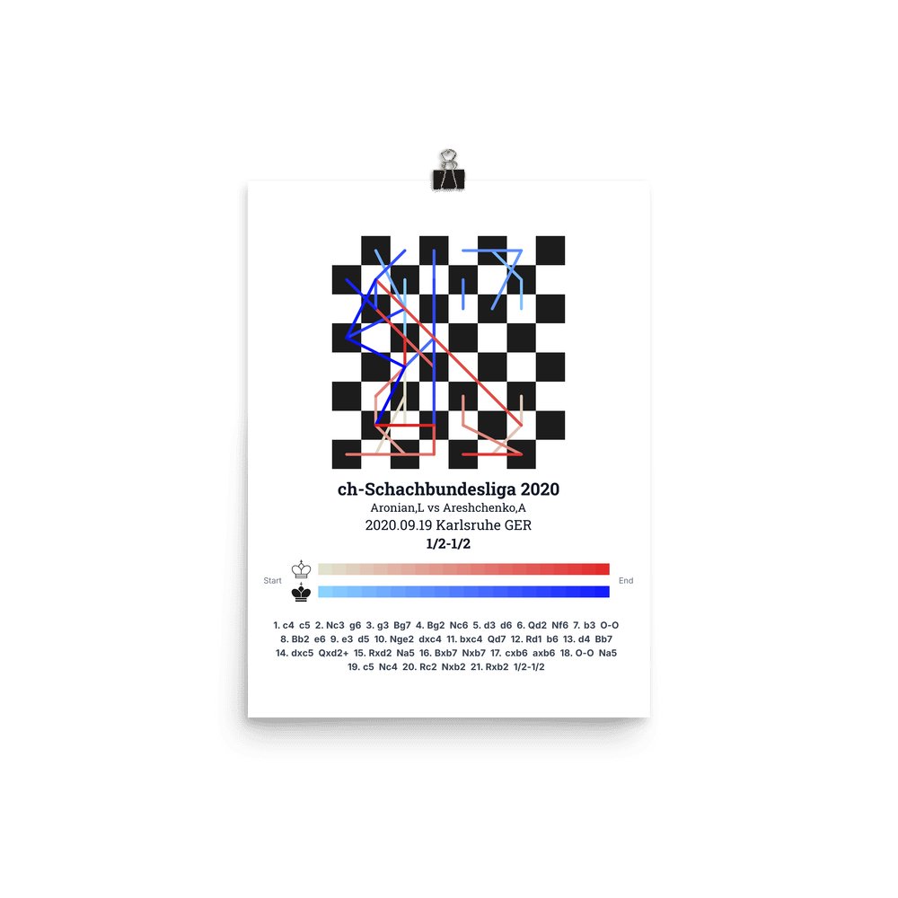 Museum-quality poster on thick, durable matte paper. A sharp, clean look for any chess visualisation.