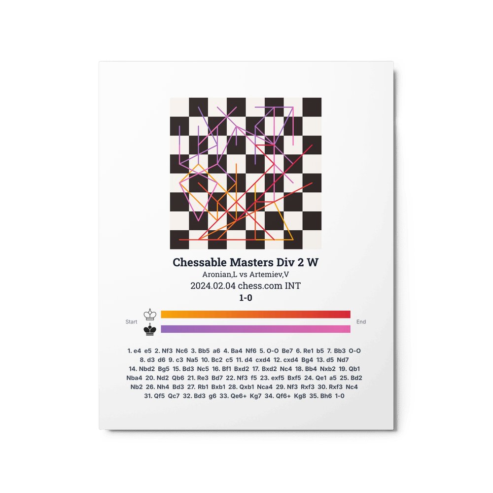 Museum-quality poster on thick, durable matte paper. A sharp, clean look for any chess visualisation.