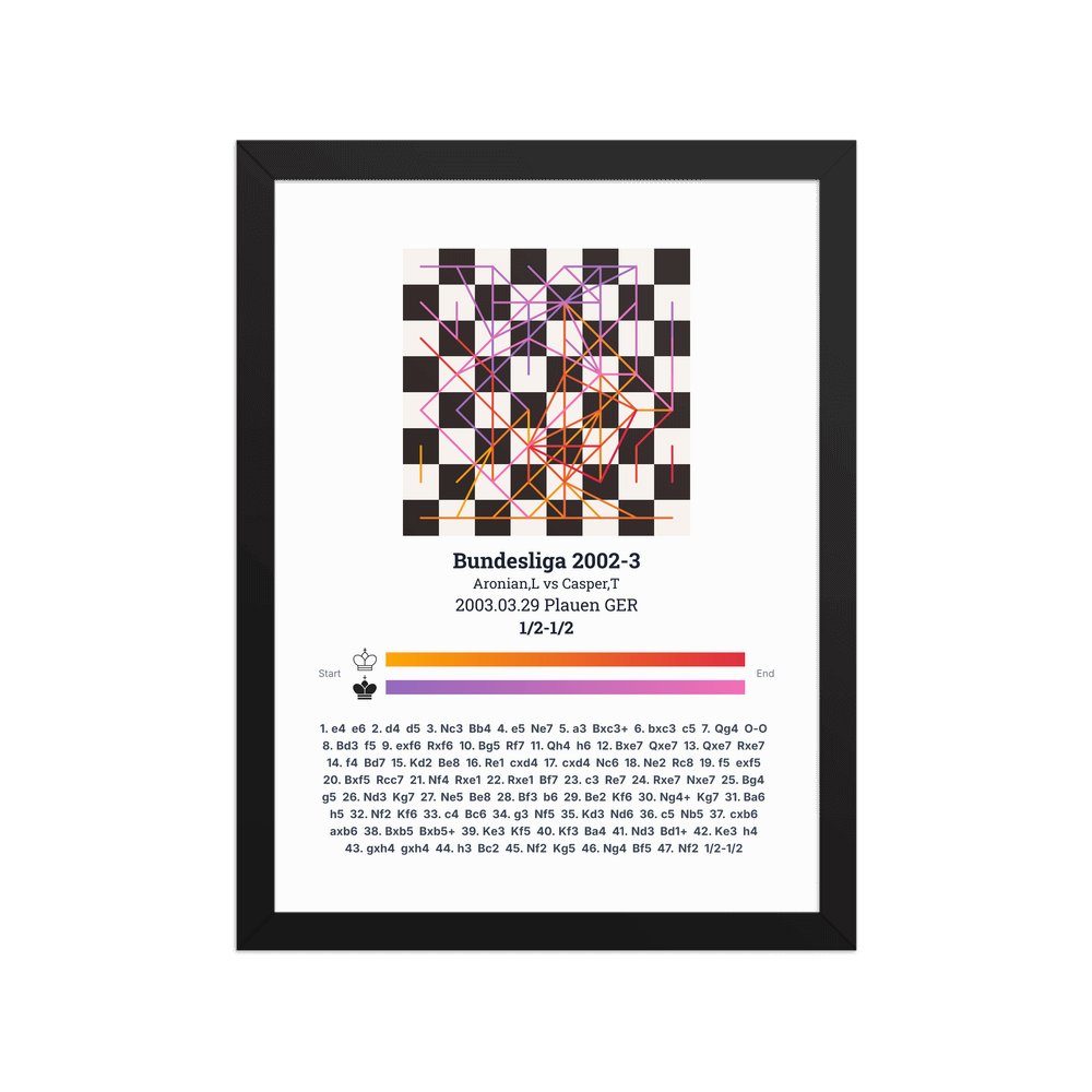 Museum-quality poster on thick, durable matte paper. A sharp, clean look for any chess visualisation.