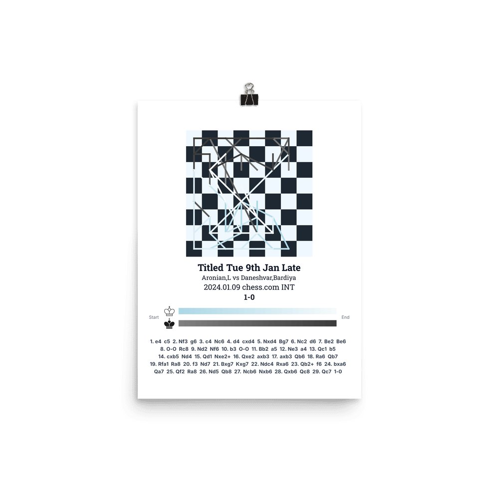 Museum-quality poster on thick, durable matte paper. A sharp, clean look for any chess visualisation.