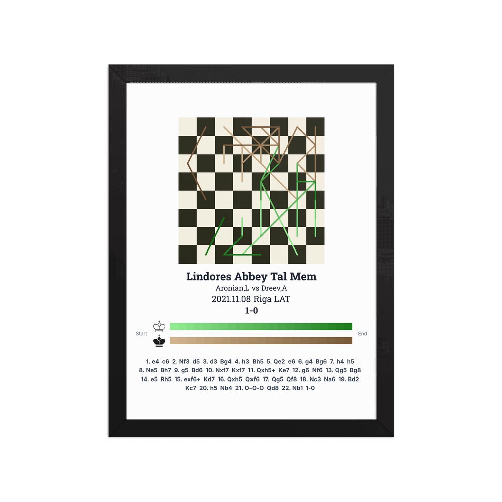 Museum-quality poster on thick, durable matte paper. A sharp, clean look for any chess visualisation.