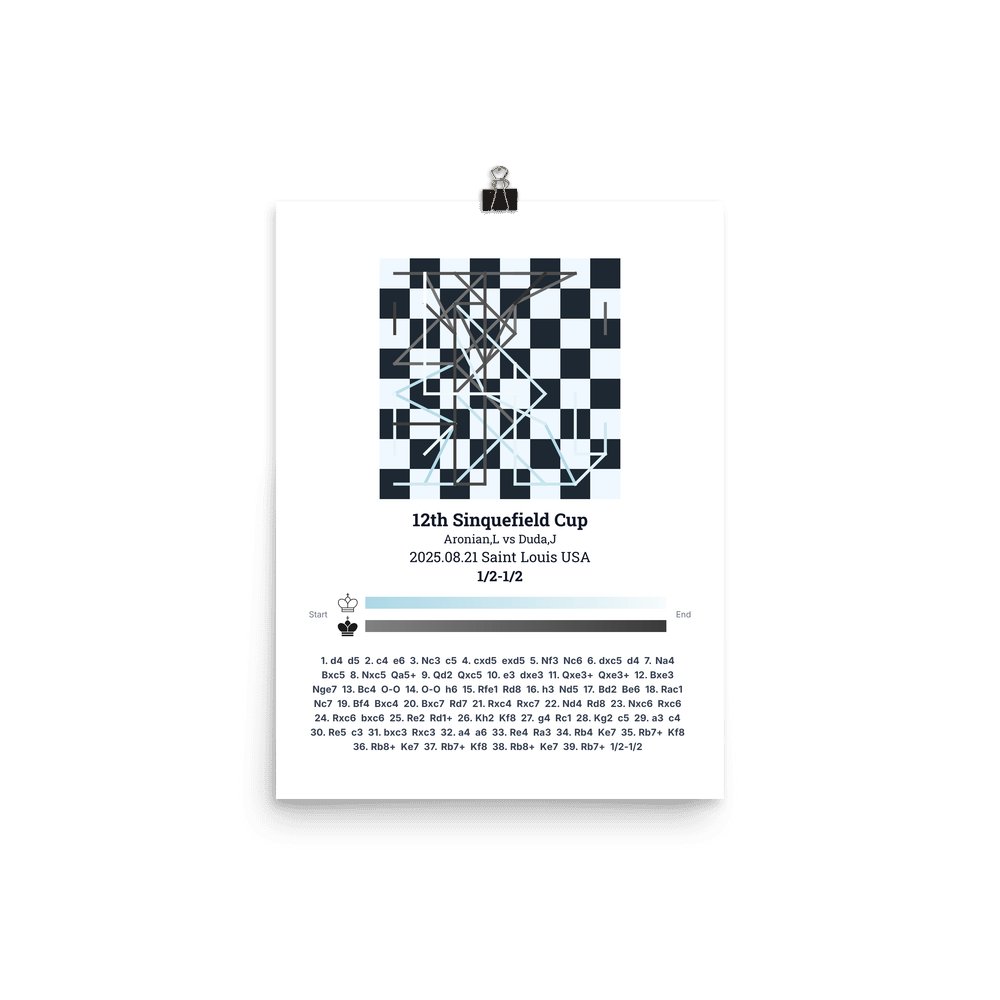 Museum-quality poster on thick, durable matte paper. A sharp, clean look for any chess visualisation.