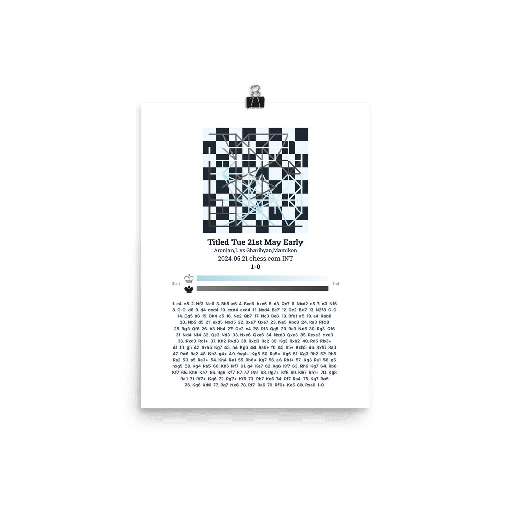 Museum-quality poster on thick, durable matte paper. A sharp, clean look for any chess visualisation.