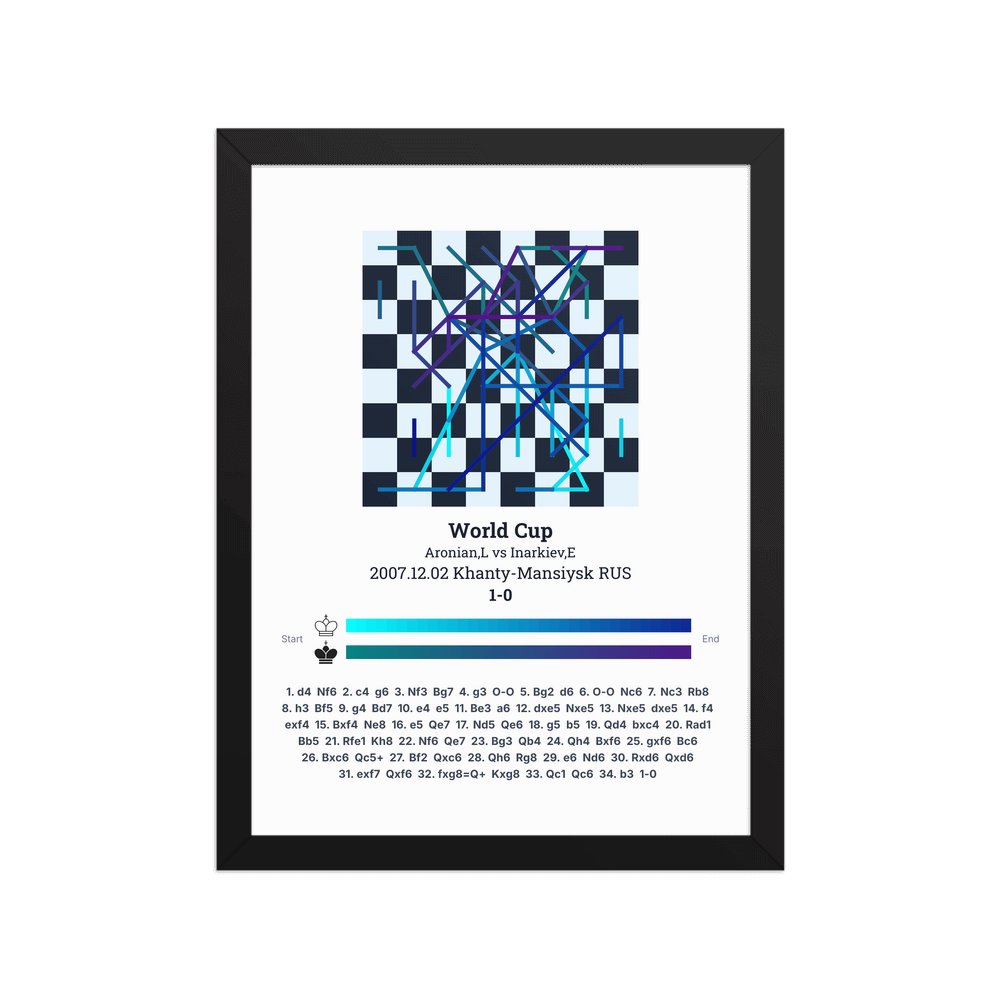 Museum-quality poster on thick, durable matte paper. A sharp, clean look for any chess visualisation.