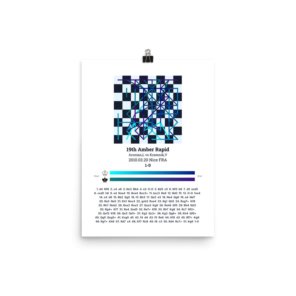 Museum-quality poster on thick, durable matte paper. A sharp, clean look for any chess visualisation.