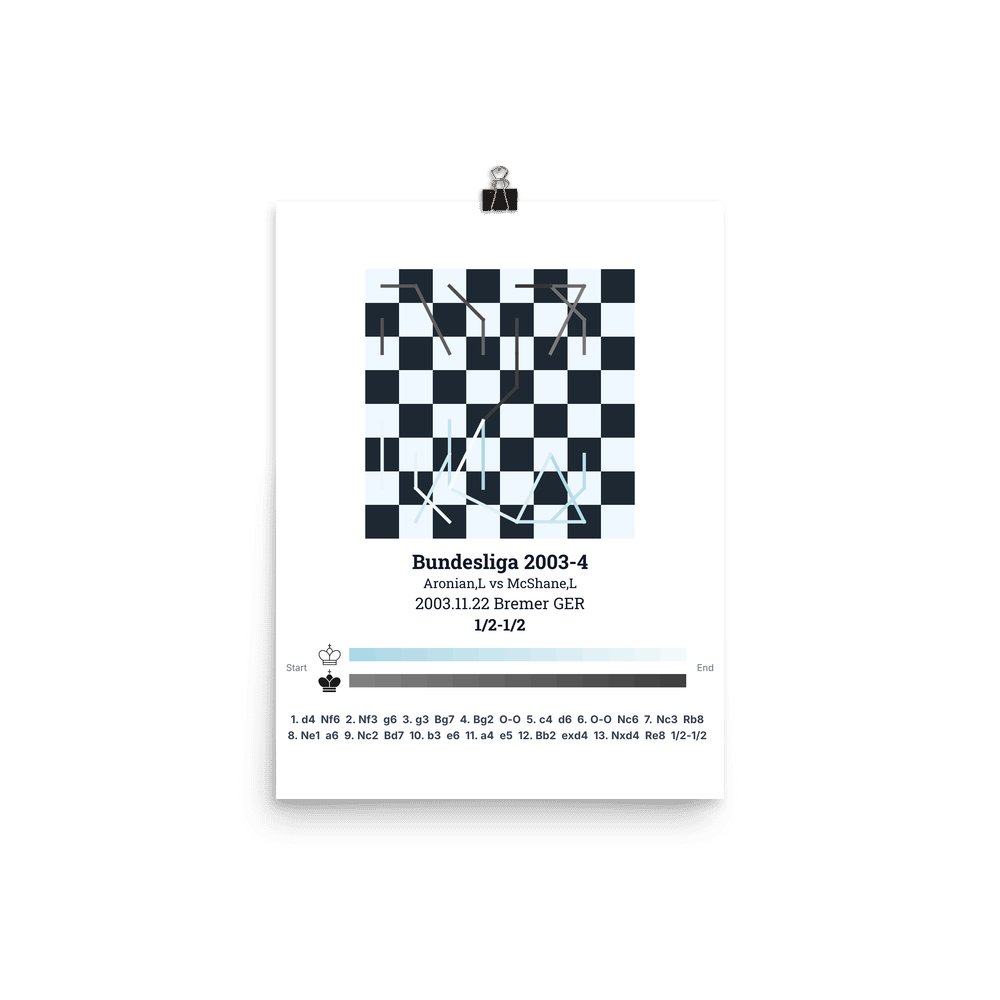 Museum-quality poster on thick, durable matte paper. A sharp, clean look for any chess visualisation.