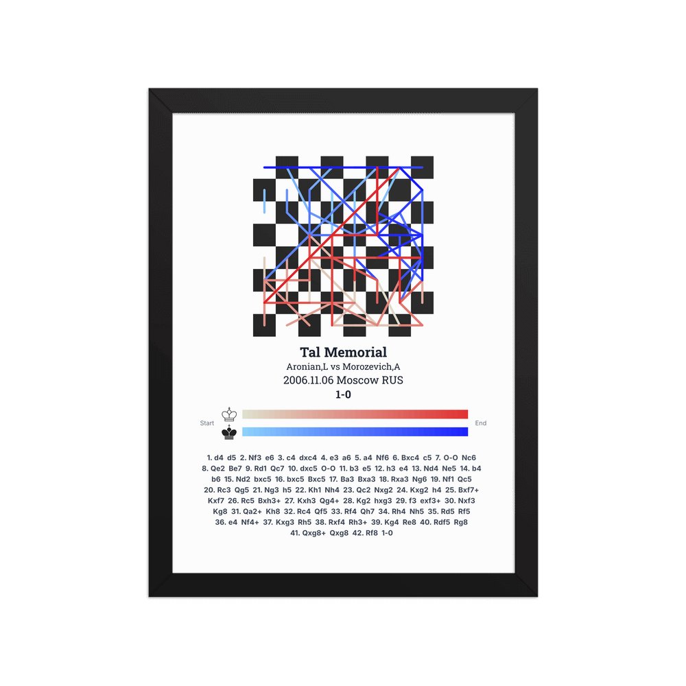 Museum-quality poster on thick, durable matte paper. A sharp, clean look for any chess visualisation.