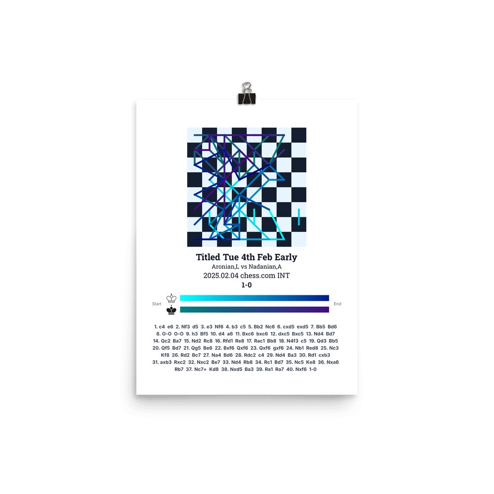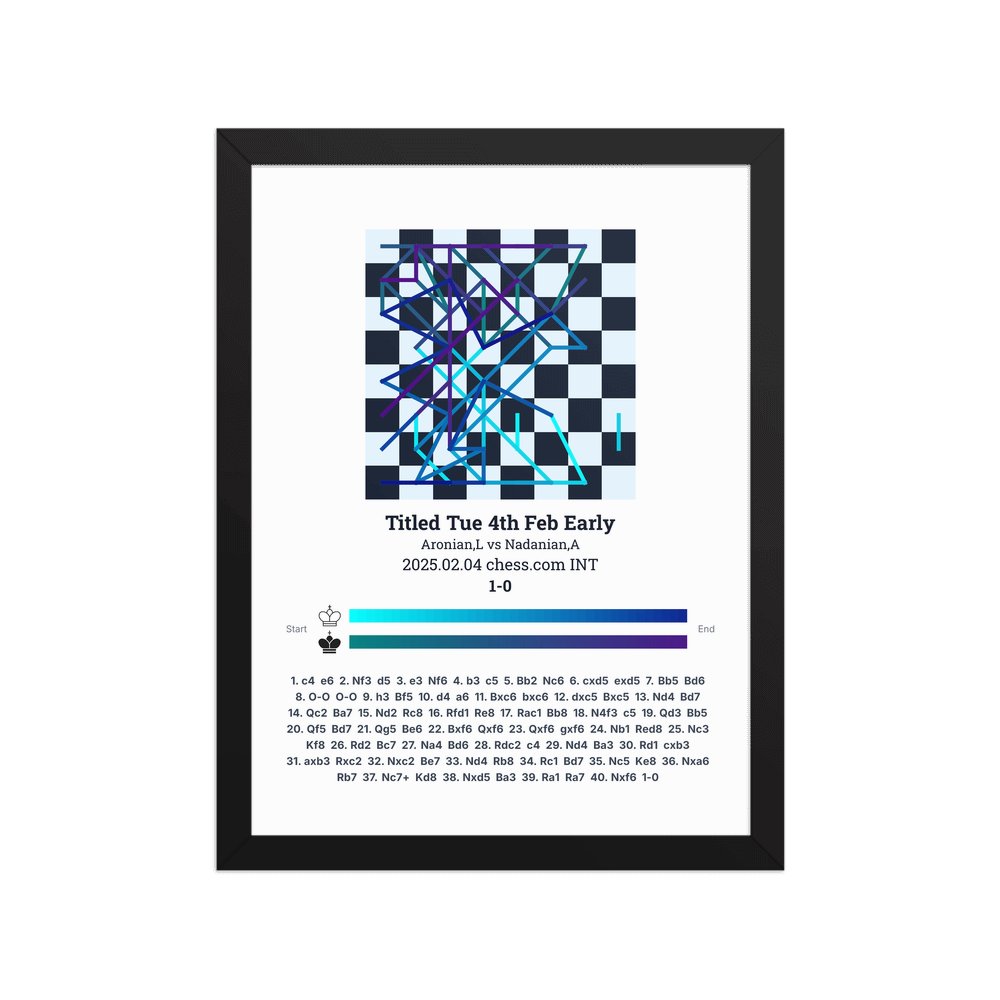 Museum-quality poster on thick, durable matte paper. A sharp, clean look for any chess visualisation.