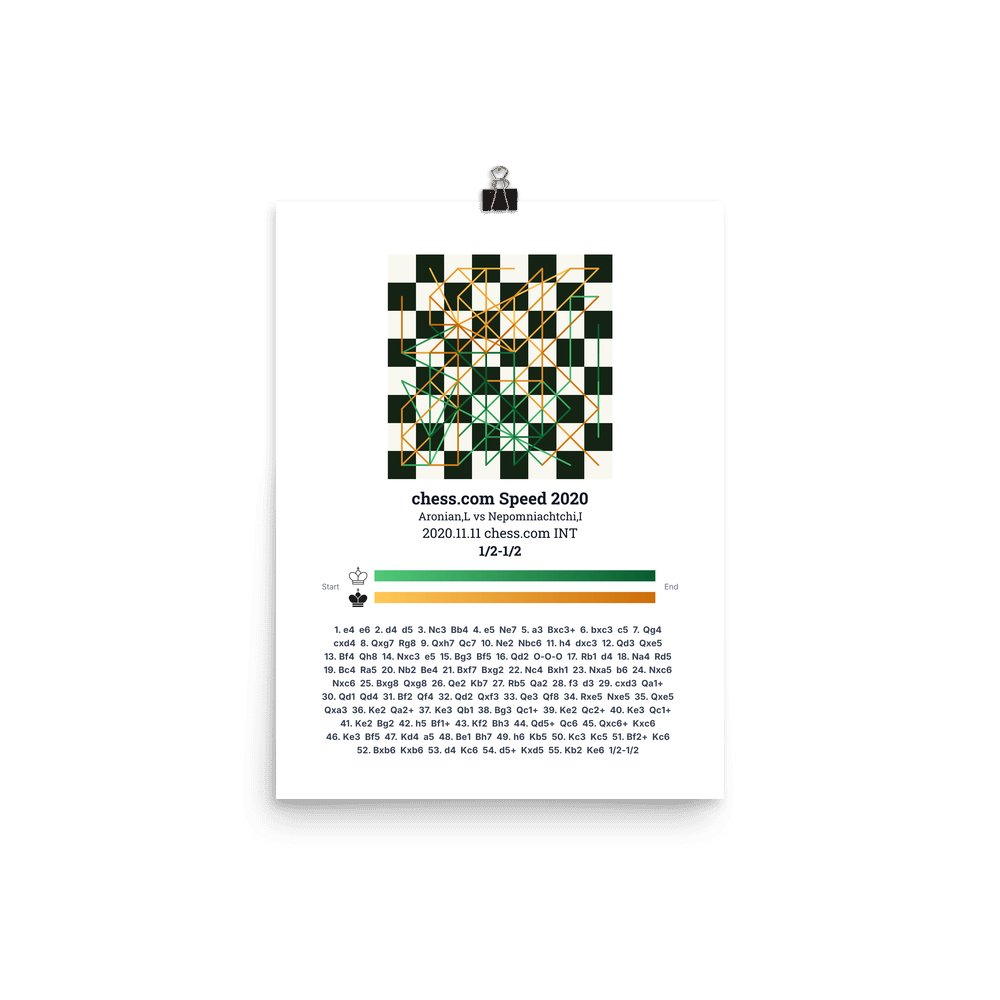 Museum-quality poster on thick, durable matte paper. A sharp, clean look for any chess visualisation.