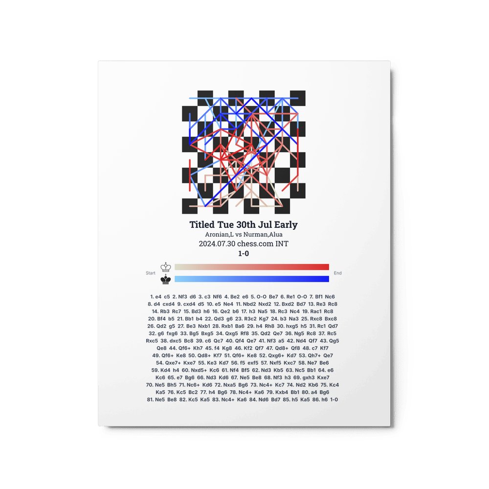 Museum-quality poster on thick, durable matte paper. A sharp, clean look for any chess visualisation.