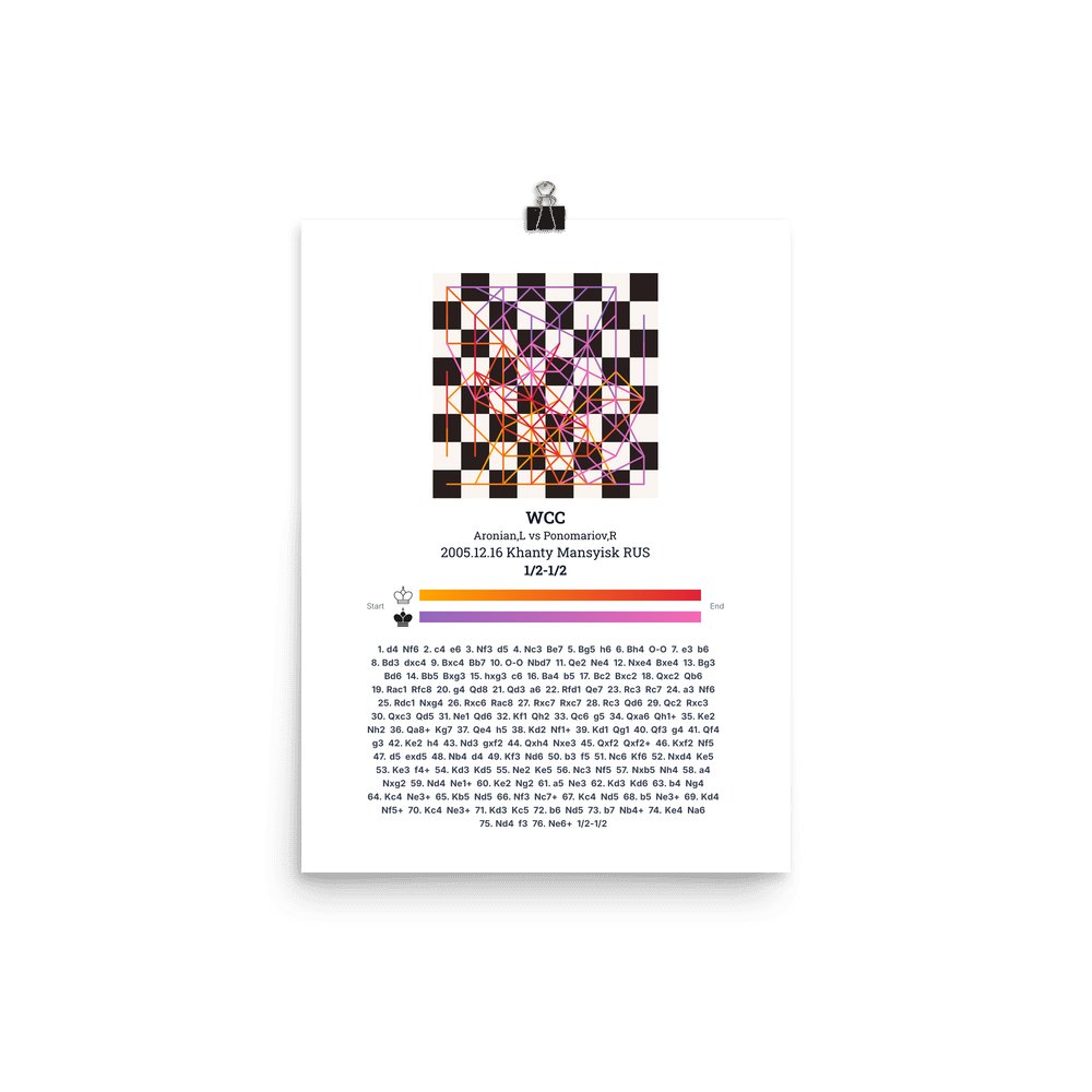 Museum-quality poster on thick, durable matte paper. A sharp, clean look for any chess visualisation.