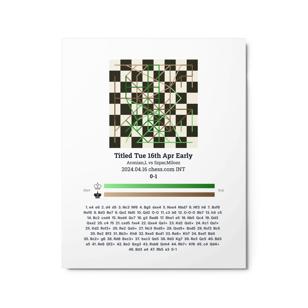 Museum-quality poster on thick, durable matte paper. A sharp, clean look for any chess visualisation.