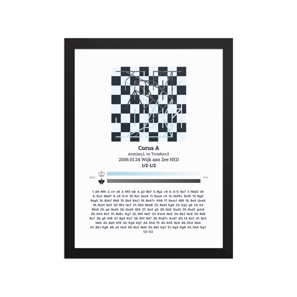 Museum-quality poster on thick, durable matte paper. A sharp, clean look for any chess visualisation.