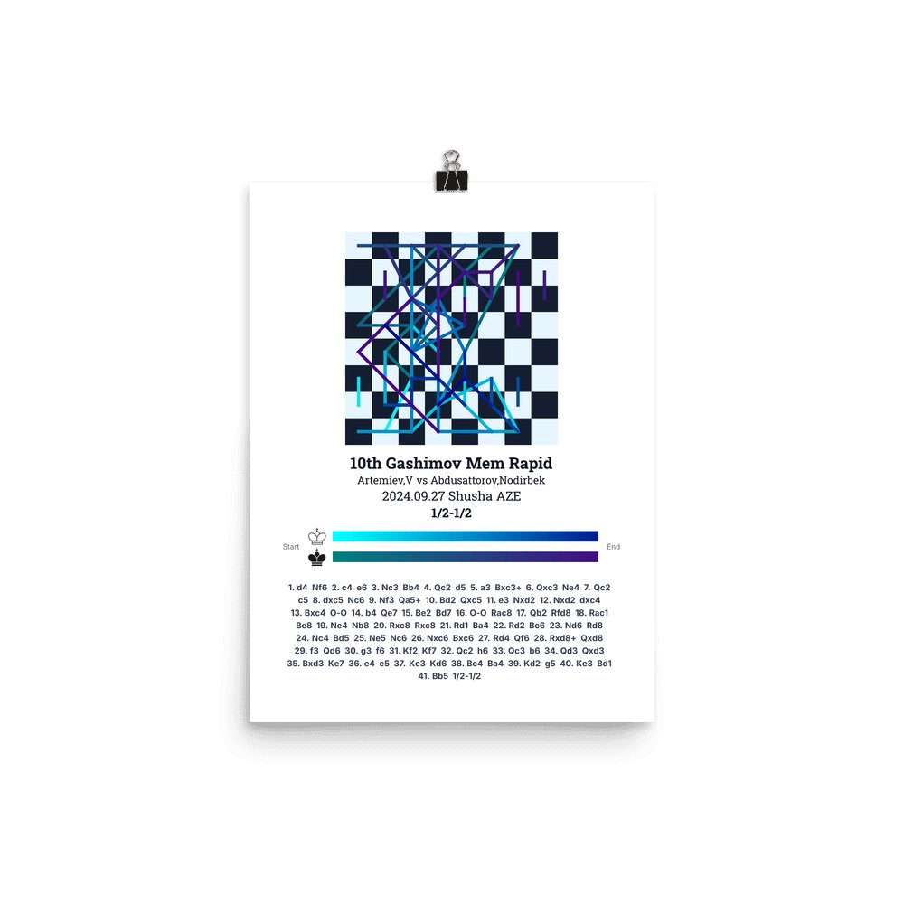 Museum-quality poster on thick, durable matte paper. A sharp, clean look for any chess visualisation.