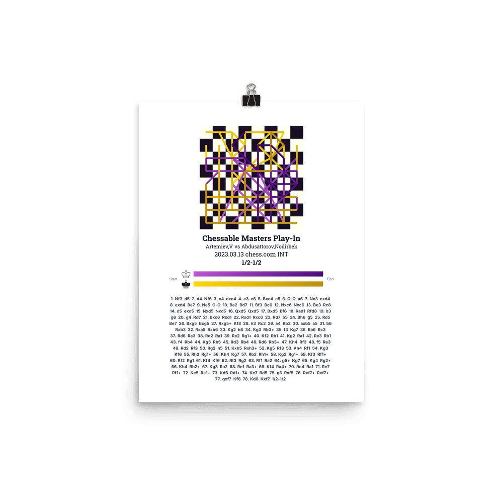 Museum-quality poster on thick, durable matte paper. A sharp, clean look for any chess visualisation.