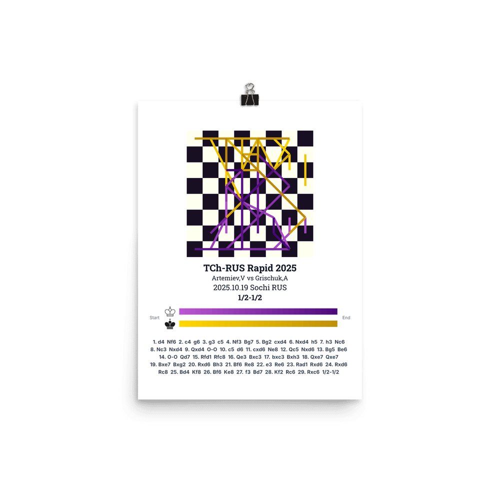 Museum-quality poster on thick, durable matte paper. A sharp, clean look for any chess visualisation.