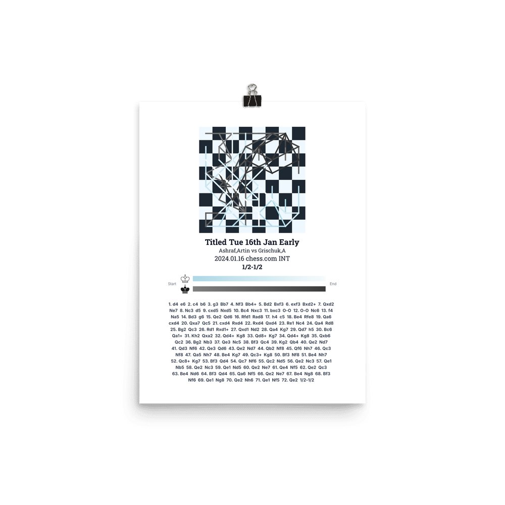 Museum-quality poster on thick, durable matte paper. A sharp, clean look for any chess visualisation.