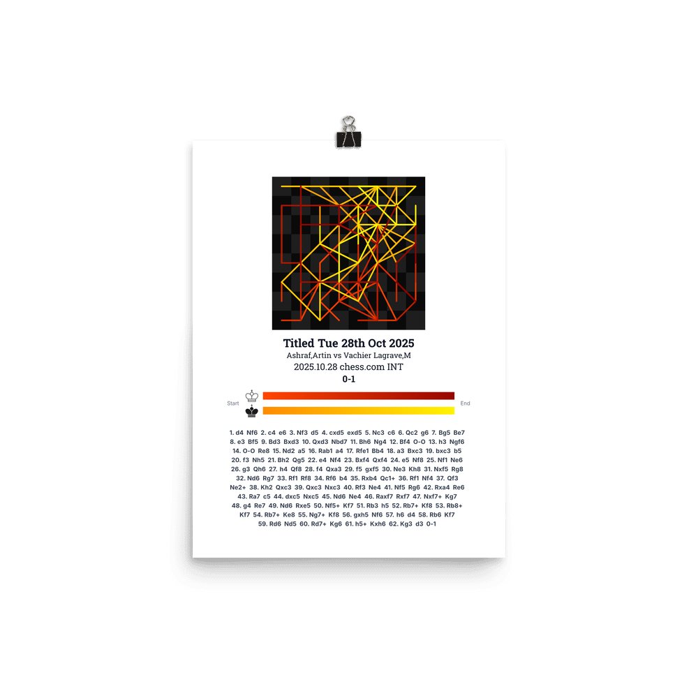 Museum-quality poster on thick, durable matte paper. A sharp, clean look for any chess visualisation.