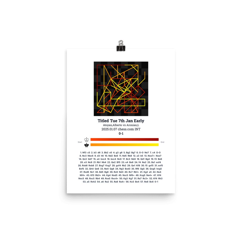 Museum-quality poster on thick, durable matte paper. A sharp, clean look for any chess visualisation.
