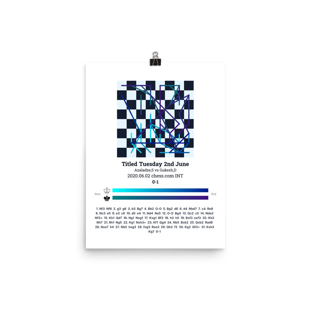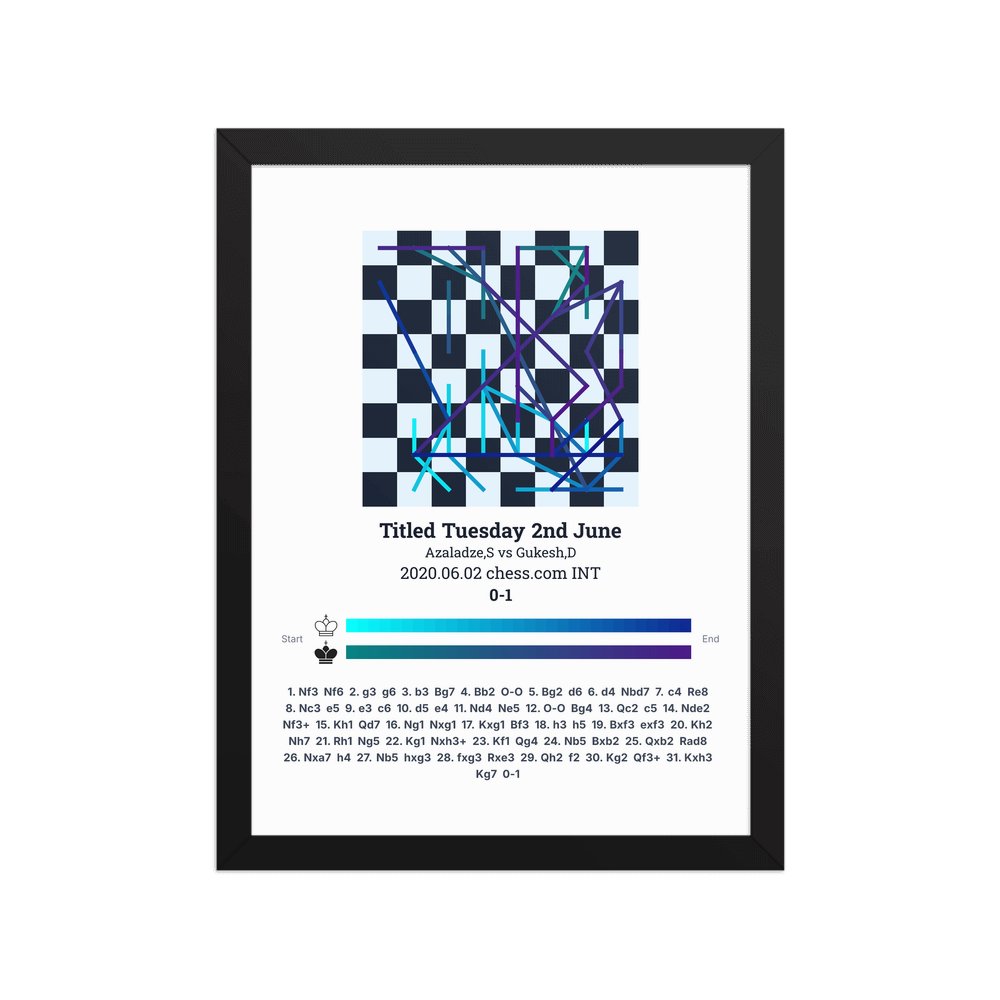 Museum-quality poster on thick, durable matte paper. A sharp, clean look for any chess visualisation.