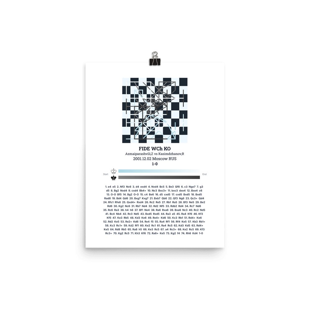Museum-quality poster on thick, durable matte paper. A sharp, clean look for any chess visualisation.