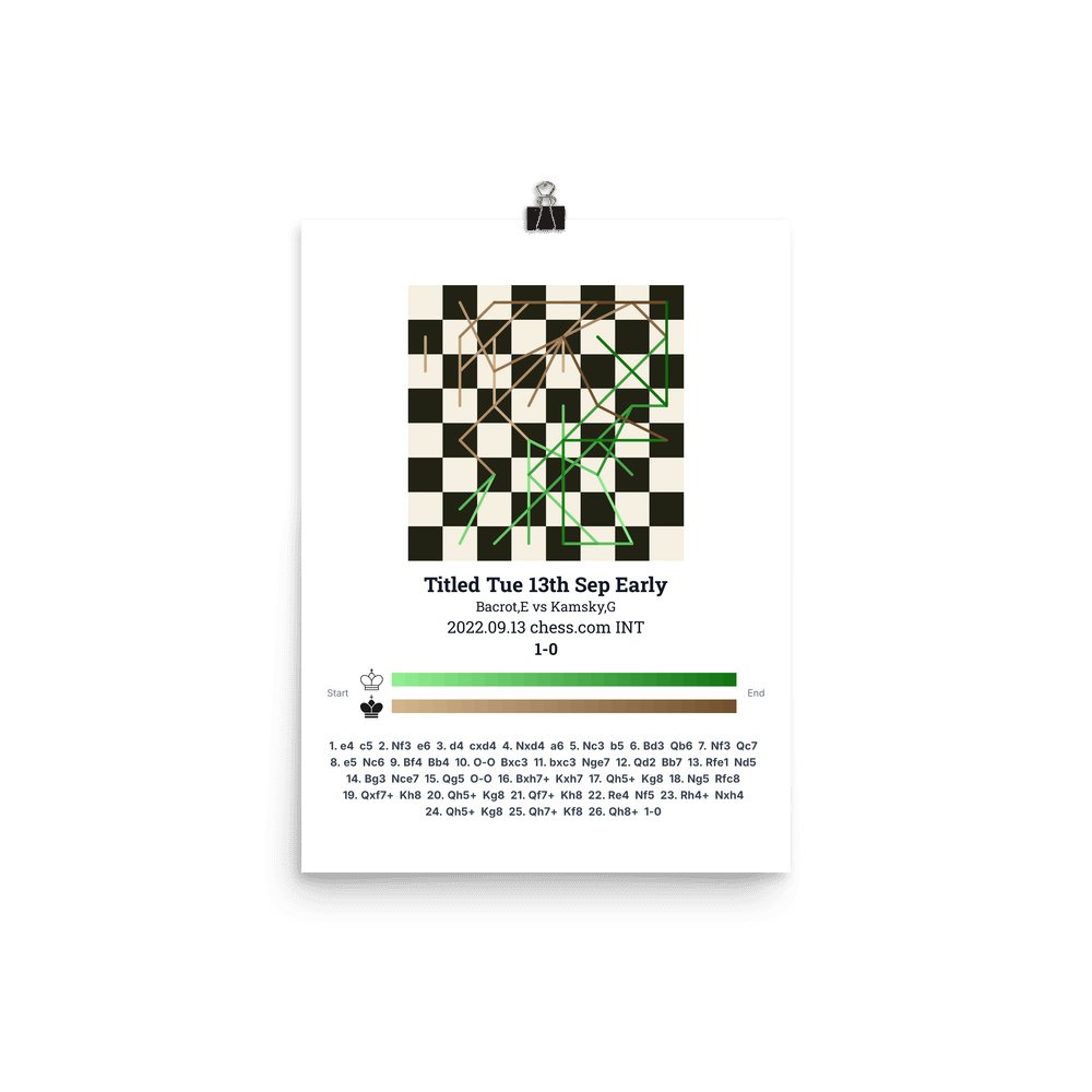 Museum-quality poster on thick, durable matte paper. A sharp, clean look for any chess visualisation.