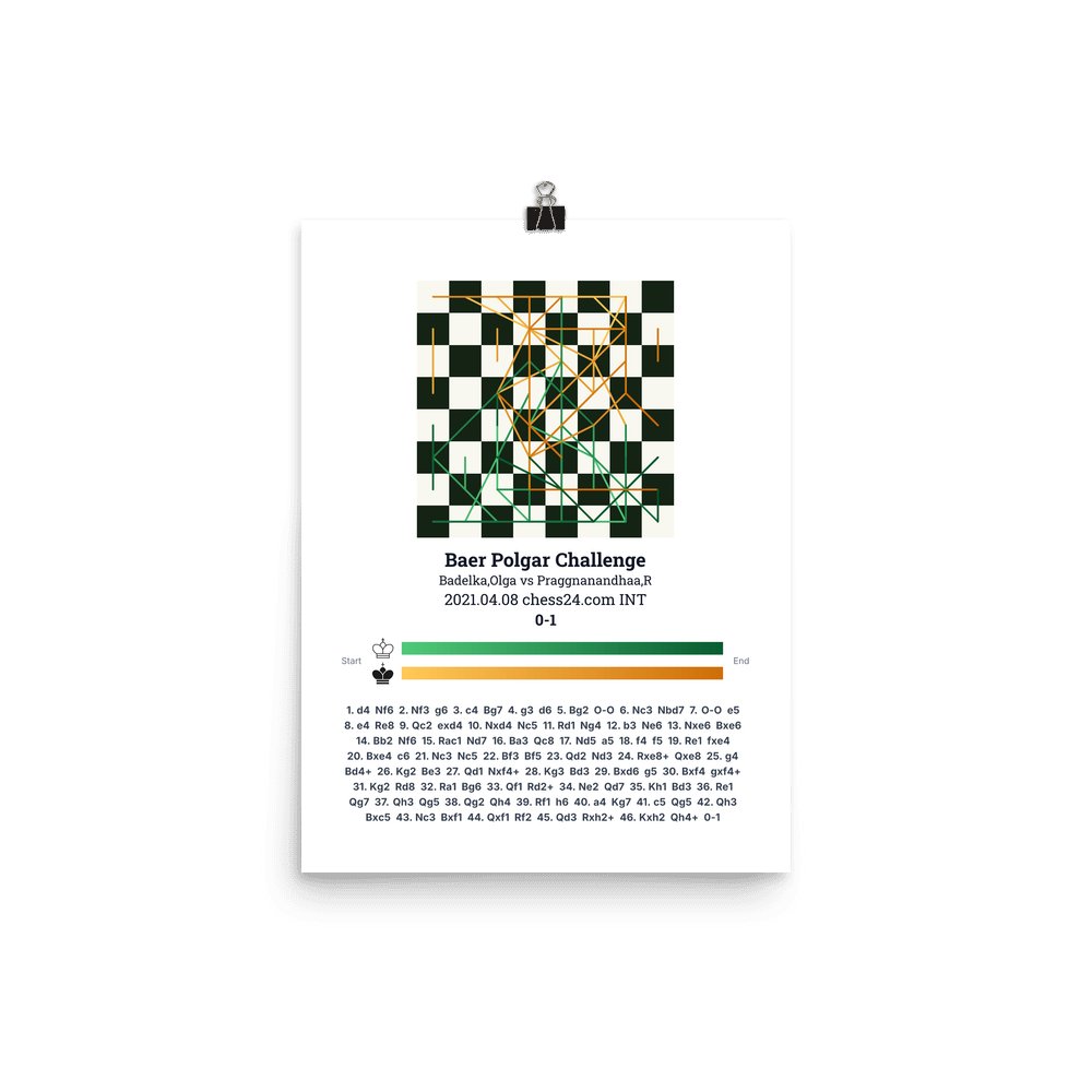 Museum-quality poster on thick, durable matte paper. A sharp, clean look for any chess visualisation.